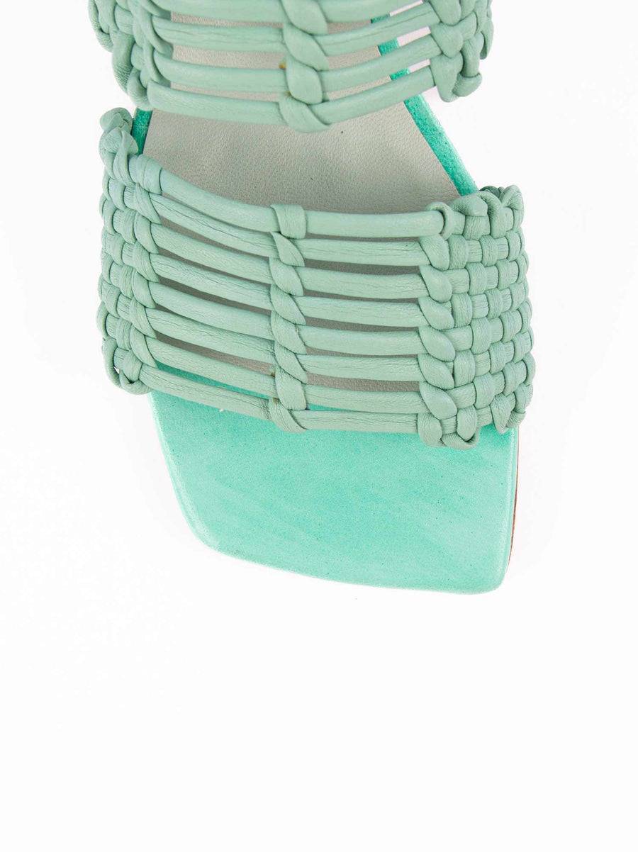 MULES IN PELLE CON TACCO- Tomaia: 100% Vera Pelle- Fodera: 100% Vera Pelle- Pelle intrecciata a mano in Italia- Tacco: 70mm- Suoletta in pelle- Suola in cuoio